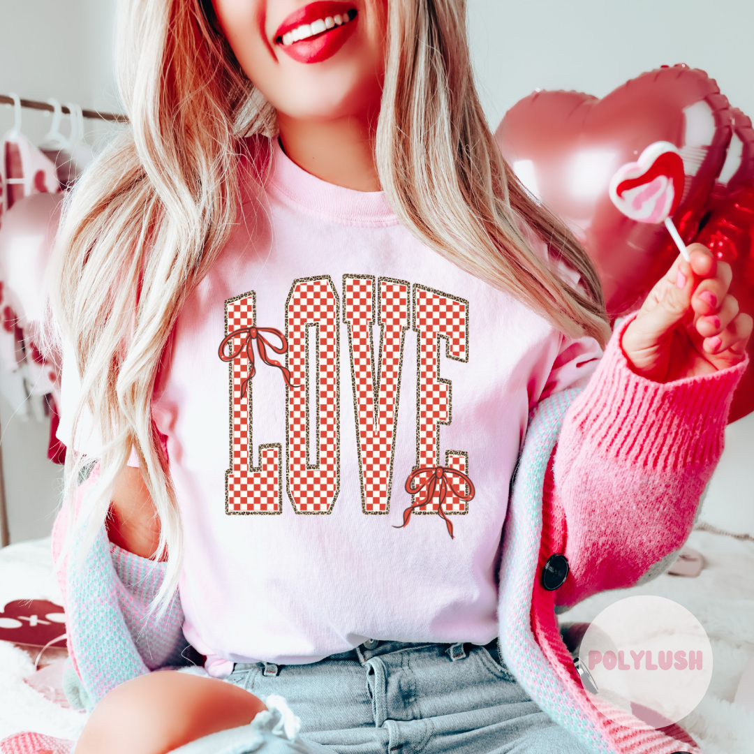 Bow Checkered LOVE DTF Transfer